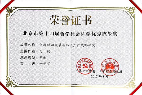 日前,中共北京市委宣传部、北京市教育委员会、北京市人力资源和社会保障局发布了《关于表彰北京市第十四届哲学社会科学优秀成果奖的决定》。我院院长马一德《创新驱动发展与知识产权战略》,获优秀成果一等奖。